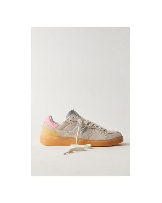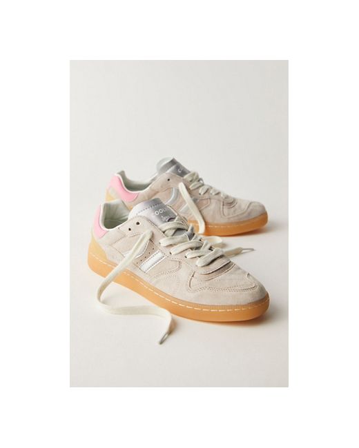 Step out in style with these fun colorblock sneakers featuring a split leather fabrication adorned with logo accents for a versatile pair you'll want to wear again and again. **Features:** Low-top style, suede uppers, leather accents, flat laces, stitched accents, slightly padded collar, flexible rubber soles **Why We ❤ It:** Designed in Spain, these sneakers feature shock absorption and high-quality materials. Coolway Goal Sneakers at Free People in Ice Silver, Size: EU 37