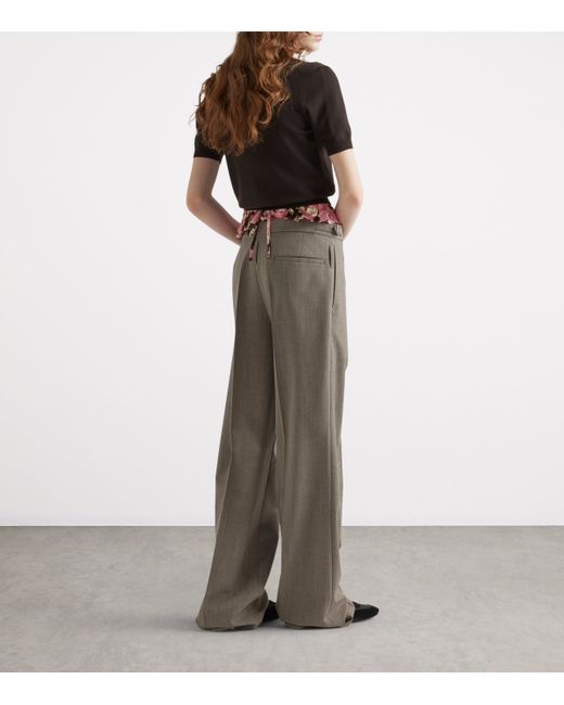 Encompassing the brand's unique positioning, these tailored trousers from Prada merge suiting codes with that of technical trousers. While the wide-leg silhouette and pleated front follow the former, the waist is enlivened with a unique integrated belt fastening, allowing you to find the perfect rise for your look.