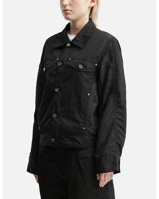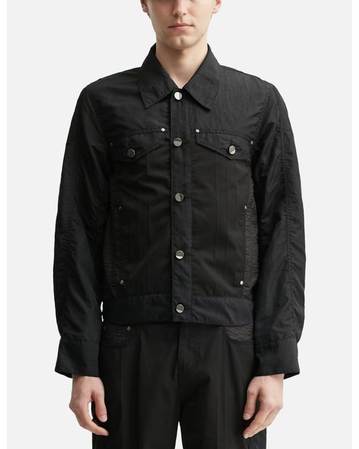 Ader Error3 Mix Fabric JacketNylon, polyester, cotton mix jacketTwo mock chest pocketsButton closureOne interior chest pocketFully linedColor: Black