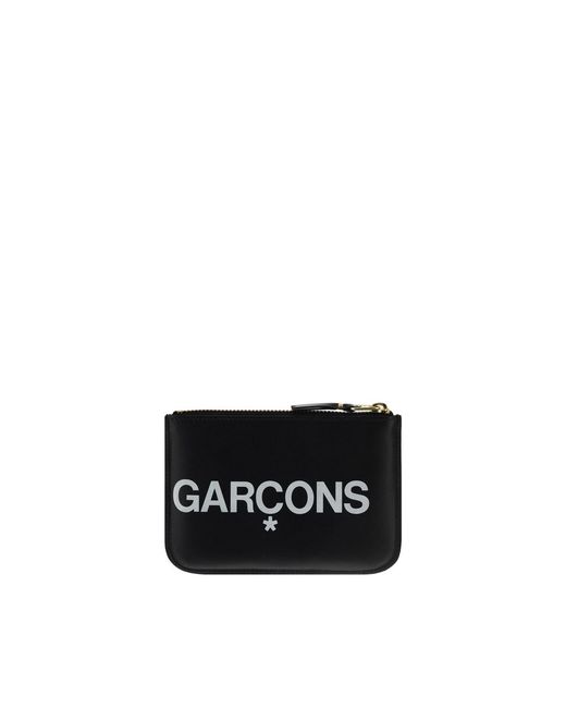 Calfskin Coin Purse by Comme des Garçons, contrasting printed logo on front following on back, engraved gold logo on front, zipper closure with one internal compartment.