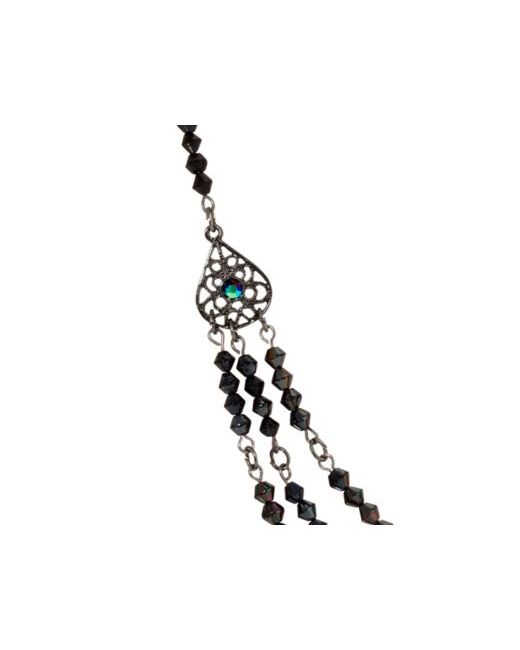 This enchanting necklace boasts three tiers of delicate lantern crystal beads suspended from intricate filigree links adorned with sparkling crystal.