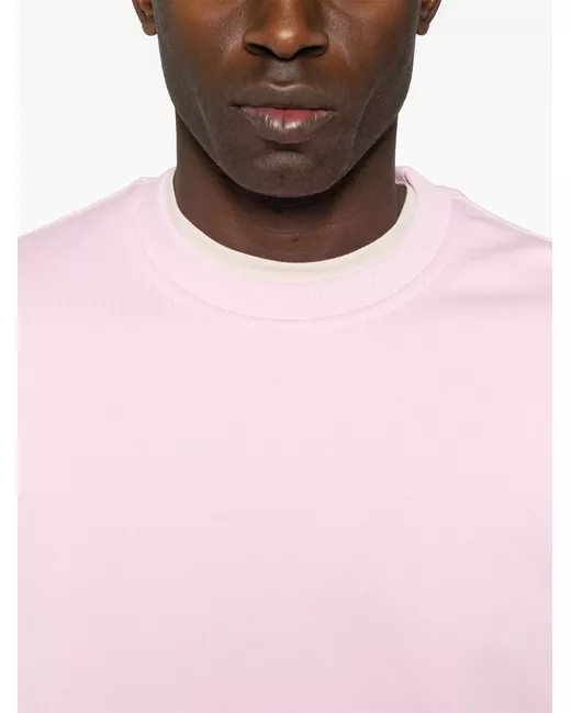 bubblegum pink crew neck drop shoulder long sleeves ribbed cuffs and hem