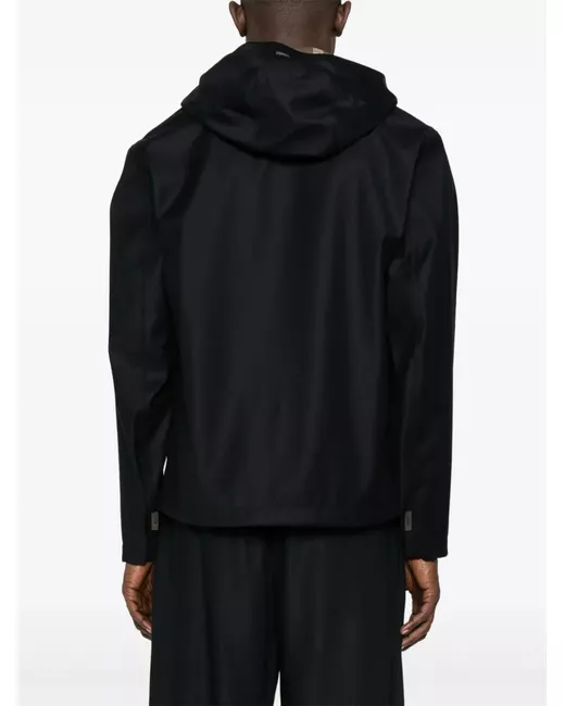 midnight blue front two-way zip fastening slouchy drawstring hood two side stud-fastening pockets press-stud fastening cuffs