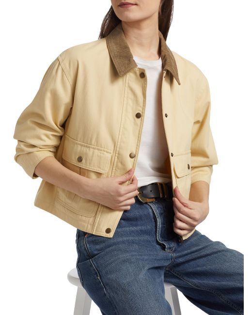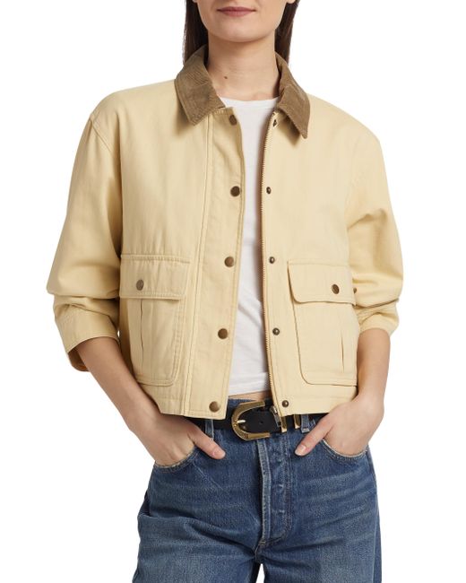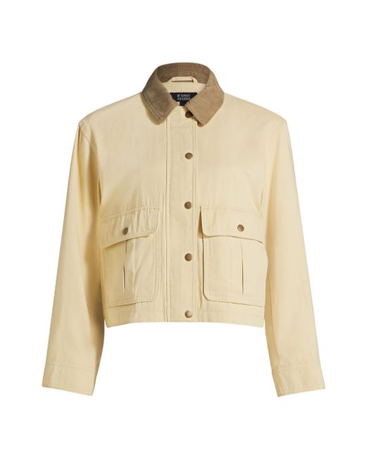 If Only Studio's twill jacket showcases a classic cut, featuring a contrasting collar, front flap pockets, and a snap closure. Spread collar Long sleeves Front snap flap pockets Front snap closure 100% polyester Lining: 80% polyester/20% cotton Machine wash Imported SIZE & FIT About 22.25" from shoulder to hem Model Measurements: 5'10" tall Model is wearing a US size Small. Contemporary Sportswear - Private Label Contempora > If Only Studio > Saks Fifth Avenue > Barneys. If Only Studio. Color: Butter Sage. Size: Small.