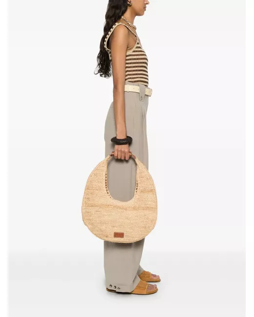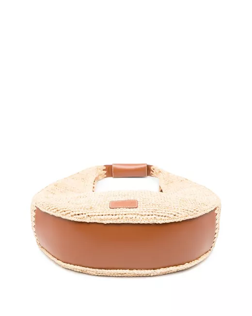 light beige concealed magnetic fastening cut-out top handle logo patch to the front This piece comes complete with a protective dust bag.