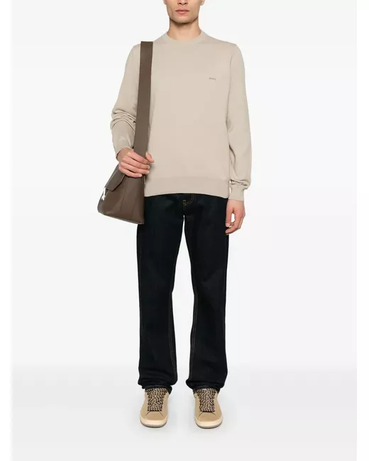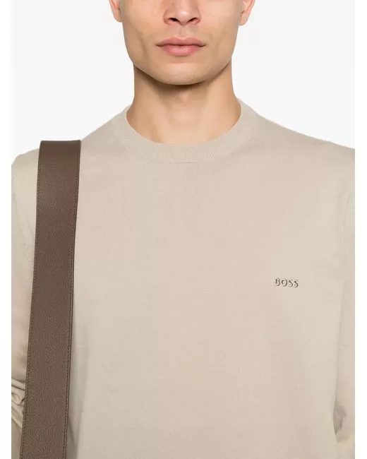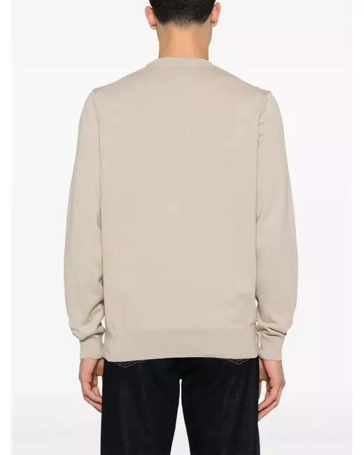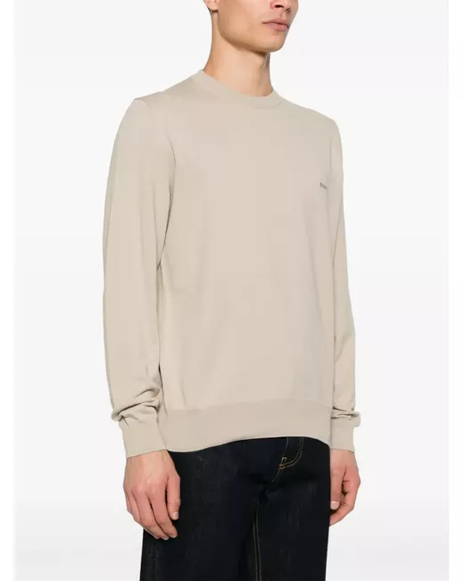 light beige crew neck long sleeves ribbed trim embroidered logo at the chest
