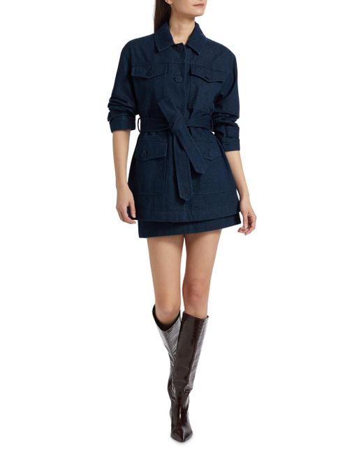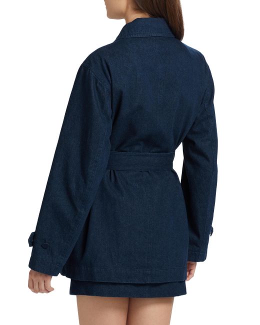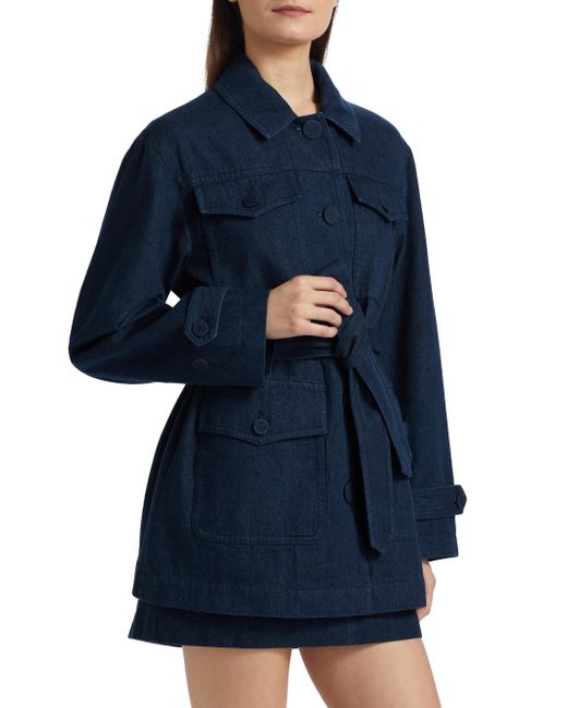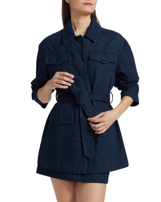 If Only Studio's belted jacket showcases a classic design with a modern denim twist. Cinched with a tonal self-tie belt, this style features a spread collar, flap pockets, and button-tab cuffs. Spread collar Long sleeves, button-tab cuffs Self-tie belt Front flap pockets Button-front closure 100% cotton Lining: 100% polyester Machine wash Imported SIZE & FIT About 31" from shoulder to hem Model Measurements: 5'10" tall Model is wearing a US size Small. Contemporary Sportswear - Private Label Contempora > If Only Studio > Saks Fifth Avenue > Barneys. If Only Studio. Color: Dark Denim. Size: XS.