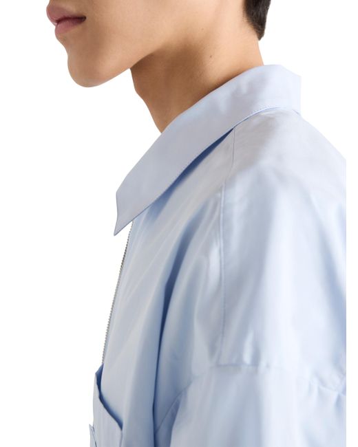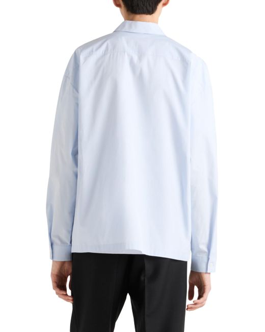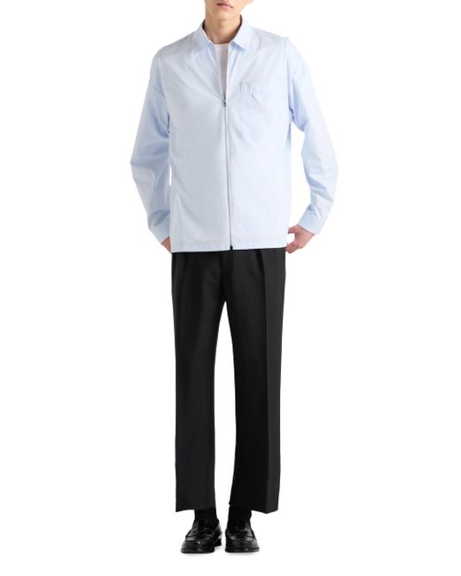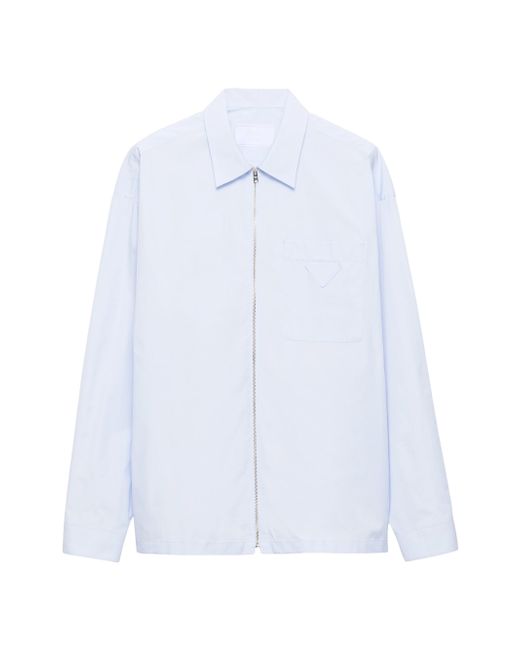 Loose fit Classic collar Classic breast pocket Straight hem Cuff with mother-of-pearl button Zipper closure Fabric triangle logo on the front Imported 100% Cotton - 100% Trochus Niloticus. Lsd Rtw - Prada Rtw > Prada > Saks Fifth Avenue > Barneys. Prada. Color: Blue. Size: Small.