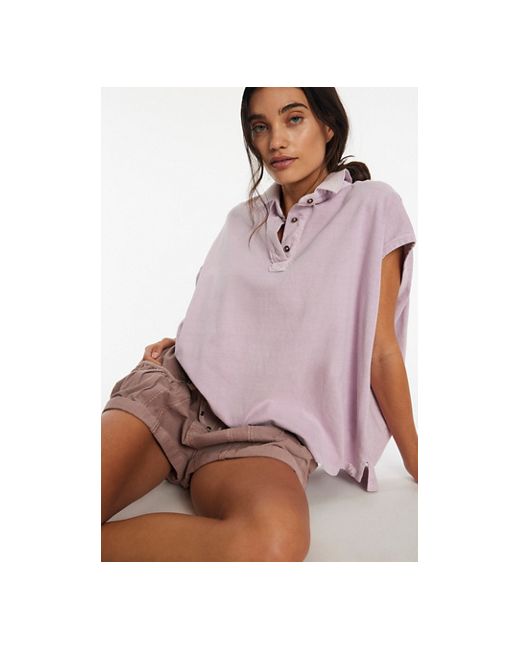 The *perfect* polo from our We The Free collection, featured in a slouchy, relaxed fit and soft cotton fabrication with a classic collared-neckline. **Fit:** Slouchy, oversized fit **Features:** Soft cotton fabrication, collared-neckline, short-sleeve style, side-slit detailing **Why We ❤ It:** This billowy top is the perfect wear-everywhere wardrobe staple. We The Free Keep On Polo at Free People in Brush Lilac, Size: XS