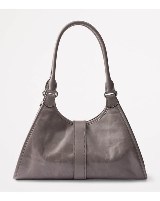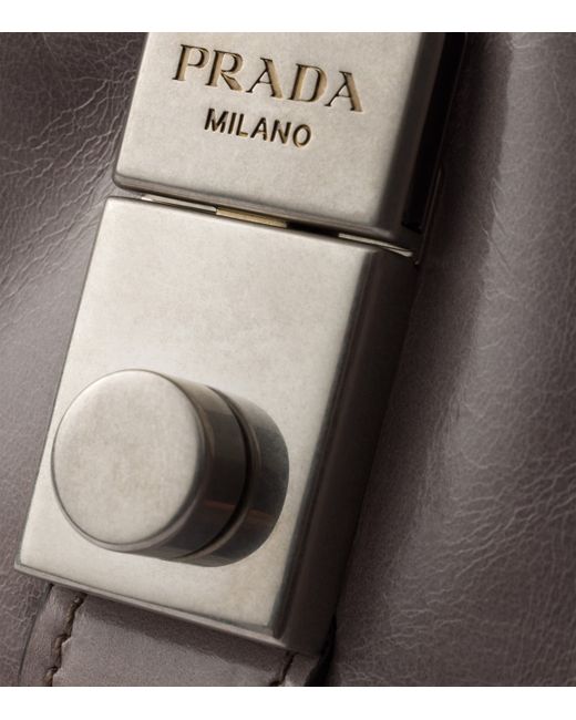 First seen in Prada's Spring/Summer 2025 show - held at the Fondazione Prada building - this tote bag is a prime example of the House's futuristic approach to accessories. Geometric lines form the trapezoidal shape of the design, with a soft, crinkled leather composition bringing a juxtaposing touch to its sharp look.