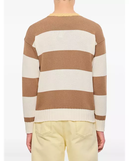 brown horizontal stripe pattern crew neck long sleeves ribbed-knit edge