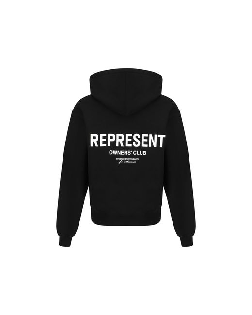Cotton Hoodie by Represent, double-slider zipper closure, two front welt pockets with flaps, ribbed cuffs, ribbed hem, iconic brand monogram printed in contrast on front, iconic brand monogram printed in contrast on back, monochrome pattern, regular fit.