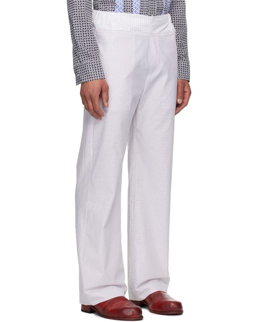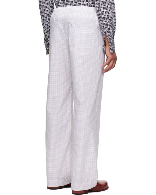 Plain-woven cotton trousers. Check pattern throughout. · Partially elasticized twill waistband · Concealed drawstring at waistband · Raw edge at waistband · Four-pocket styling · Mock fly Supplier color: White/Navy/Burgundy