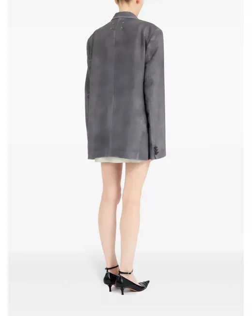 slate grey mohair-wool blend faded effect front button fastening notched lapels long sleeves buttoned cuffs chest welt pocket dart detailing two front flap pockets signature four-stitch logo curved hem