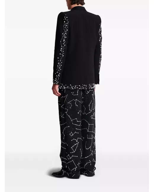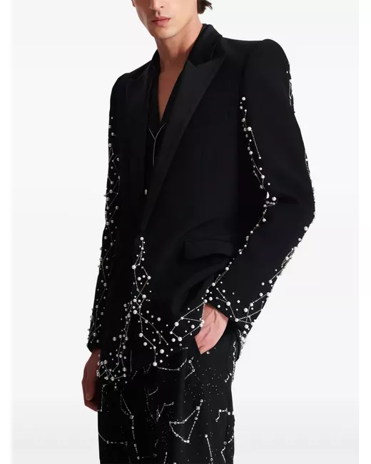black faux-pearl embellishment peak lapels front button fastening two side flap pockets long sleeves