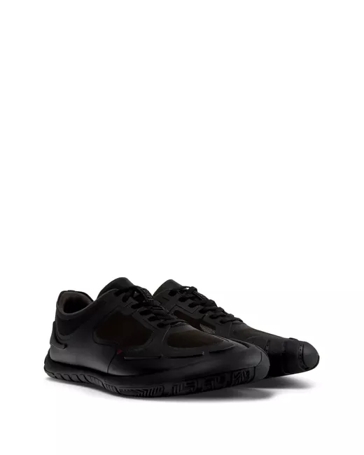 black front lace-up fastening mesh panelling rubber sole round toe