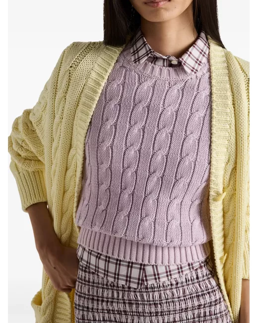 light purple triangle logo cable knit short sleeves ribbed cuffs and hem