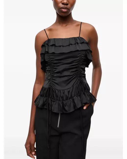 black concealed rear zip fastening spaghetti straps ruffled trim square neck