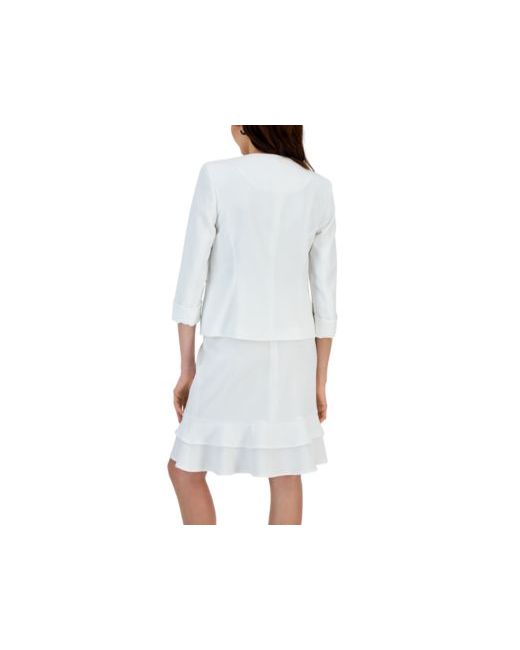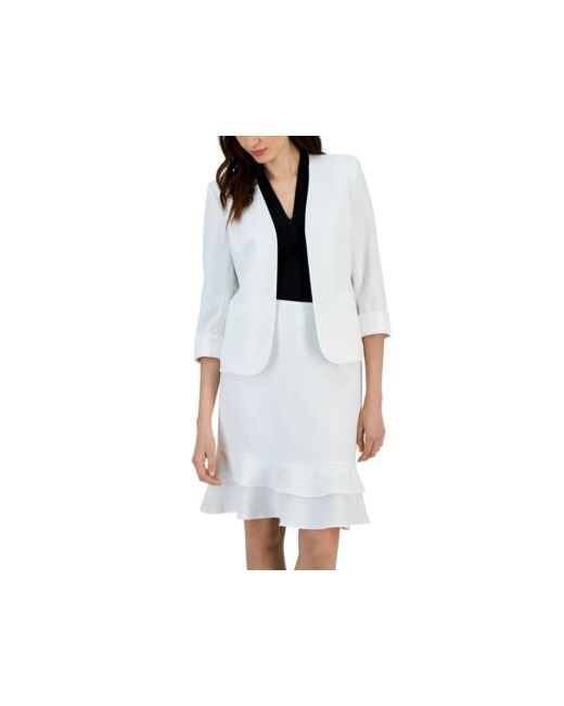 Give your look a polished layer with this career jacket from Kasper designed with an open front and rolled sleeves.