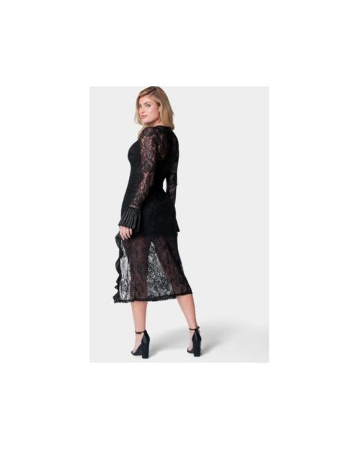 The bebe Women's Slit Lace Dress is a stylish and elegant piece that combines intricate lace detailing with a chic design.