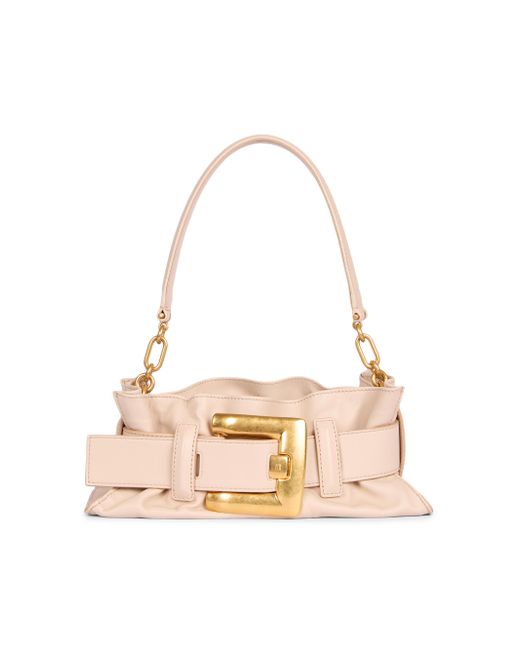 Made in Italy, Balmain's Anthem mini shoulder bag is crafted of soft leather and styled with goldtone buckle detailing. Shoulder strap Interior: one card Magnetic closure Leather Spot clean Made in Italy SIZE About 12"W x 4"H x 4.5"D ABOUT THE BRAND In 1945, founder Pierre Balmain made his well-received debut of opulent, ultra-feminine designs. Known today for its iconic blazers, impeccably constructed dresses and signature fragrances, the brand continues its dedication to masterful tailoring and elegance under the helm of Creative Director Olivier Rousteing. Handbags - Advanced Designer Handba > Balmain > Saks Fifth Avenue > Barneys. Balmain. Color: Beige.