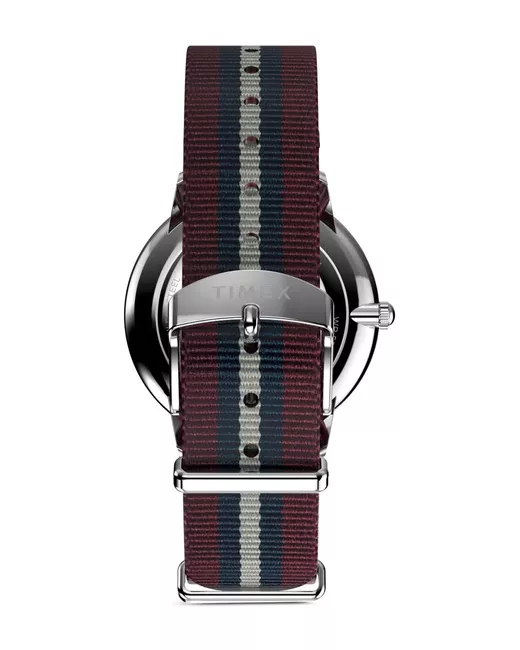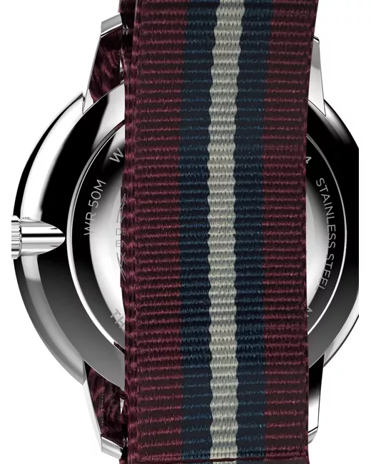 38mm stainless steel case round face white Roman numeral dial index hands screw-down crown fabric strap tang-buckle fastening seconds sub-dial This item comes with a standard one-year warranty from the brand.