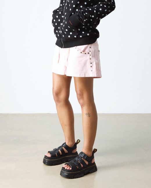 Comfortable getting noticed. The Mattison 3 Strap sandal is built on our unmissable new Mattison platform sole. The hybrid sole has a comfortable EVA midsole and an exaggerated PVC tread that extends up the side walls to create a jagged pattern. The sole is also marked with signature DM's grooving and yellow stitching. The suede-covered foam footbed provides extra cushioning on long days. Each strap is adjustable to help you find the perfect fit, and the padded ankle strap is tagged with our black and yellow heel loop. Dr. Martens Suede Mattison Strap Sandals in Black, Size: 3