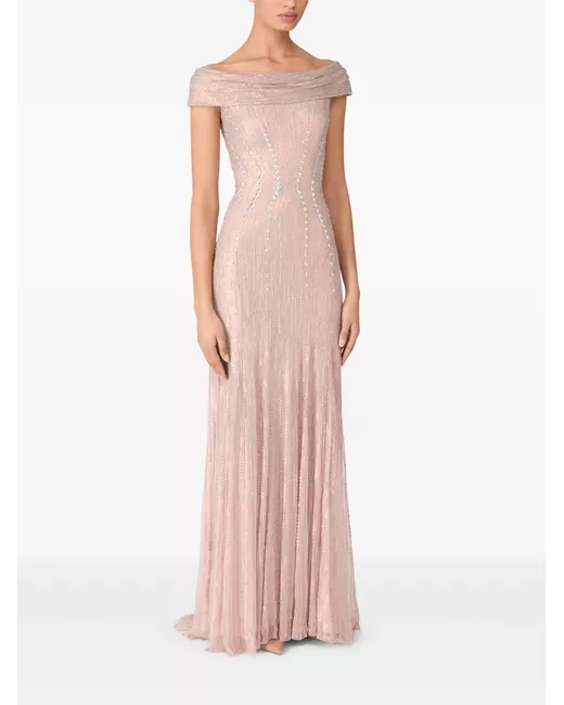 anemone pink sequin design concealed rear fastening off-shoulder train