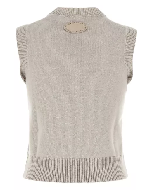 light grey ribbed texture crew neckline sleeveless design elasticated hem logo patch at back soft finish