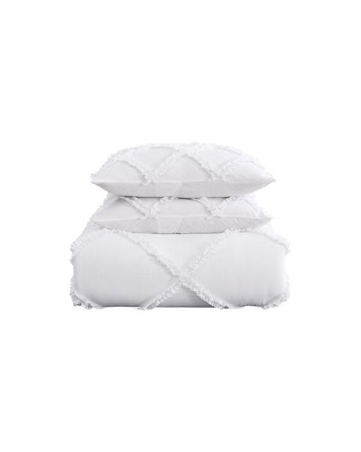 Romantic ruffles cover the Norah comforter set in a diamond pattern with an heirloom style. Solid white is timeless and versatile in a soft polyester microfiber. Pair with pure white sheets and accessories, or add a pop of color or print. Comforter is filled with 100% polyester.