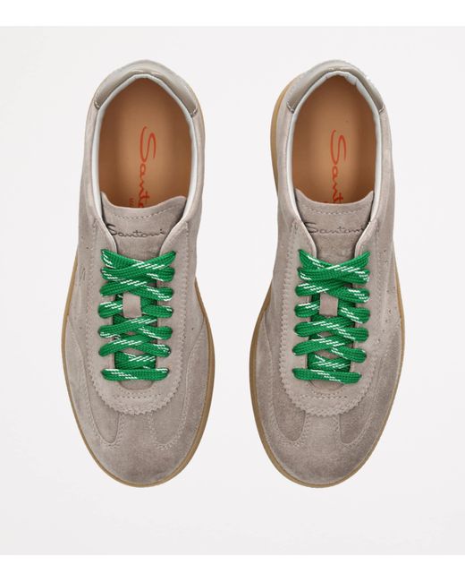 Santoni may be world-renowned for its use of traditional craft, but these unique mules prove that the brand's identity fits equally well with a more contemporary style. The pair proposes an update to the classic tennis sneaker silhouette, swapping traditional canvas for a buttery suede and adorning the style with sleek branded adornment and contrast laces for a pop of colour.
