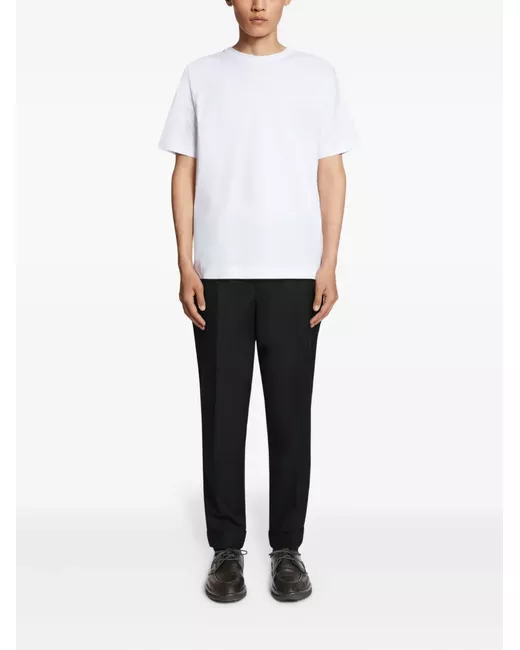 black concealed front fastening two side slit pockets belt loops turn-up hem Model is 189 cm / 74.5 inches and wears size 48.