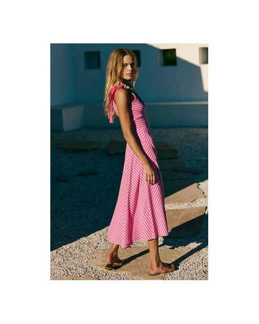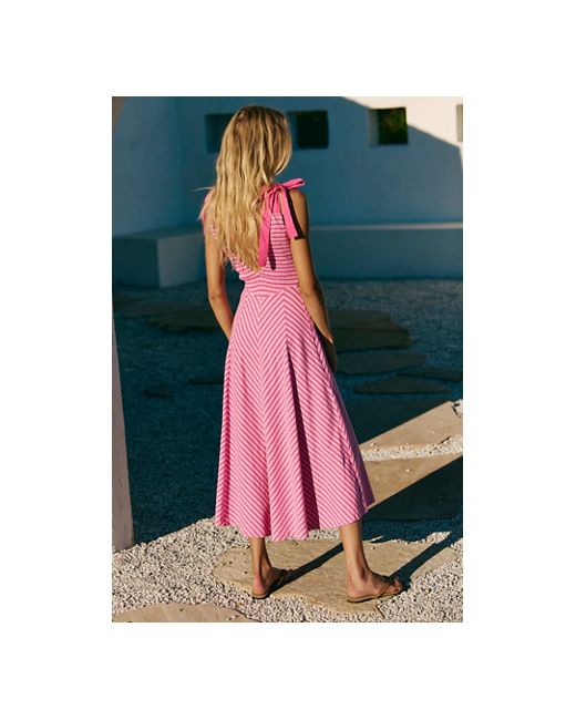 Flattering smocking and shoulder bow details make this drop-waist midi dress from free-est an easy, effortless option. **Fit:** Drop-waist, midi length **Features:** Comfy cotton fabrication, paneled skirt, smocked bodice, V-neckline and back, bow details at shoulders **Why We ❤ It:** Pair with your favorite sandals for an instant outfit. Cecelia Midi by free-est at Free People in Hibiscus Pink Combo, Size: XS