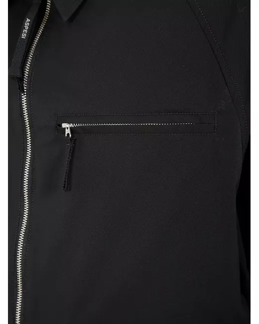 black front zip fastening multiple zip-fastening pockets classic collar long raglan sleeves