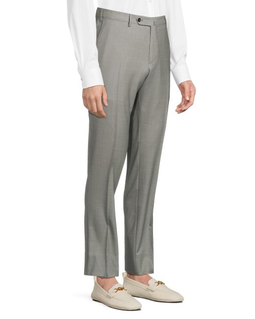 PT Torino's high-performance wool pants feature a tailored crease-front design, button-tab closure, and a sleek, slim leg. Band waistband, belt loops Crease front Side slash pockets Back button-through besom pockets Zip fly, button-tab closure 100% virgin wool Dry clean Made in Portugal SIZE & FIT Rise: about 10" Inseam: about 34" Leg opening: about 7.5" Model measurements:6'2" tall, 40" chest, 31" waist Model is wearing a US size 40. Men Luxury Coll - Trousers > Pt Torino > Saks Fifth Avenue > Barneys. PT Torino. Color: Grey. Size: 32.