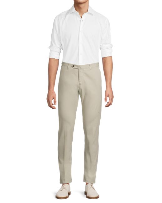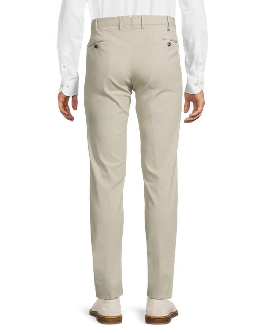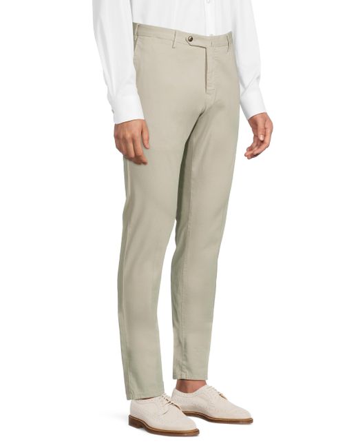 PT Torino's Soft Stretch pants feature a tailored crease-front design, button-tab closure, and a sleek, slim leg. Band waistband, belt loops Crease front Side slash pockets Back button-through besom pockets Zip fly, button-tab closure 62% cotton/36% lyocell/2% elastane Machine wash Imported SIZE & FIT Rise: about 10" Inseam: about 34" Leg opening: about 7.5" Model measurements: 6'2" tall, 40" chest, 31" waist Model is wearing a US size 40. Men Luxury Coll - Trousers > Pt Torino > Saks Fifth Avenue > Barneys. PT Torino. Color: Grey. Size: 30.