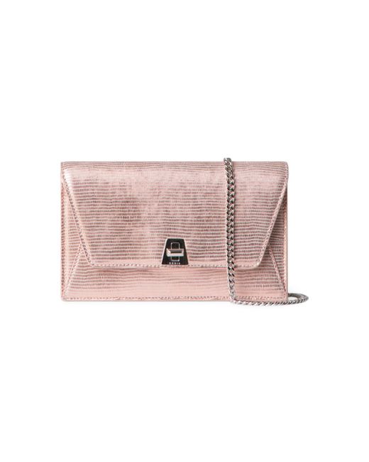 Accompanied by a sleek chain strap, Akris' Anouk envelope bag is crafted of embossed leather with logo-engraved turn-lock closure. Removable chain strap Turn-lock closure Silvertone hardware Interior zip pocket Leather Imported SIZE 7.5"W x 4.5"H x 1.5"D ABOUT THE BRAND Founded in 1922 in St. Gallen, Switzerland, the name Akris was derived from founder Alice-Kriemler Schoch's initials. The entrepreneurial designer first started designing dotted aprons with intricate embroidery and soft cotton, which quickly grew into a full line of ready-to-wear. Almost 100 years later, the brand is now helmed by her grandsons. Creative Director Albert Kriemler continues to pay homage to his grandmother through polka-dot lined clothing, luxe fabrications and modern design-which now include sleek accessories like the cult-favorite AI trapezoidal handbag. Handbags - Advanced Designer Handba > Akris > Saks Fifth Avenue > Barneys. Akris. Color: Pale Rose Metallic.