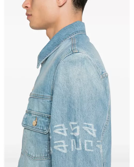 light blue front button fastening two chest flap pockets two side welt pockets buttoned-cuff sleeves