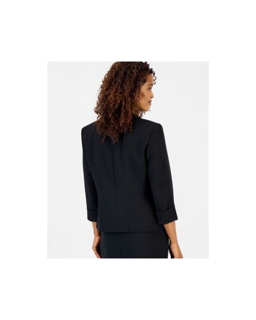 Plus Stretch Crepe Open-Front 3/4-Sleeve Collarless Blazer