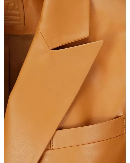 caramel brown double-breasted button fastening chest welt pocket two side flap pockets bonded seams