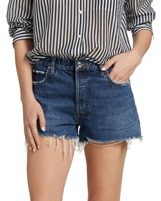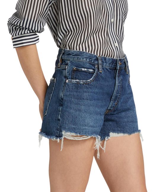 Crafted of pure cotton denim, Frame's Hang mid-rise shorts showcase a classic five-pocket and distressing at the cuffs. Five-pocket style Zip fly, button closure 100% cotton Machine wash Imported SIZE & FIT Rise: about 11" Inseam: about 3" Model measurements: 5'10" tall Model is wearing a US size 4 ABOUT THE BRAND In 2012, Erik Torstensson and Jens Grede combined their California-modern point of view with a European sensibility to establish Frame. The ready-to-wear label, first known for its denim, has expanded to leather, cashmere and tailoring-all with an effortless ethos at the core. Focusing on quality fabrics and foundational dressing, the brand delivers chic everyday staples favored by Hollywood starlets and beyond. Contemporary Sportswear - Denim And Bottoms > Frame > Saks Fifth Avenue > Barneys. Frame. Color: Rafael. Size: 24.