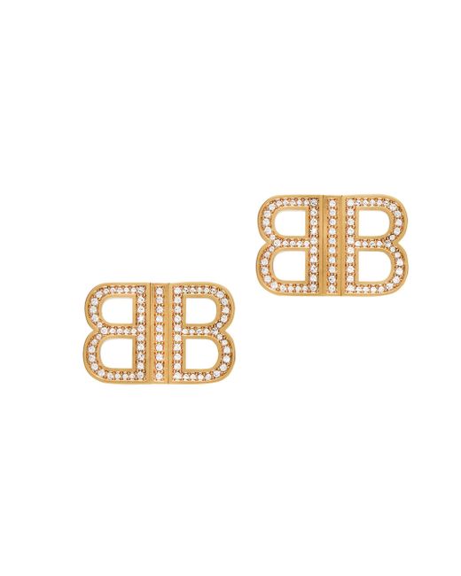 BB 20 XS Earrings in gold brass and rhinestones. Brass and glass Earrings XS size BB logo with white rhinestones Round stoppers at the back closure For pierced ears Sold as a pair Made in Italy Wipe with a soft cloth SIZE Dimensions: 1''L x 0.6''H x 0.6''W. Lsd Handbags - Balenciaga > Balenciaga > Saks Fifth Avenue > Barneys. Balenciaga. Color: Gold Crystal.