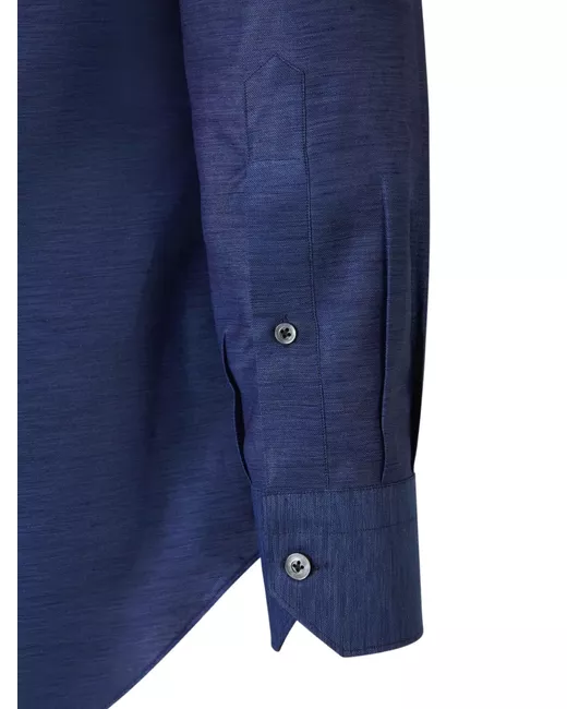 navy blue front button fastening buttoned cuffs classic collar curved hem