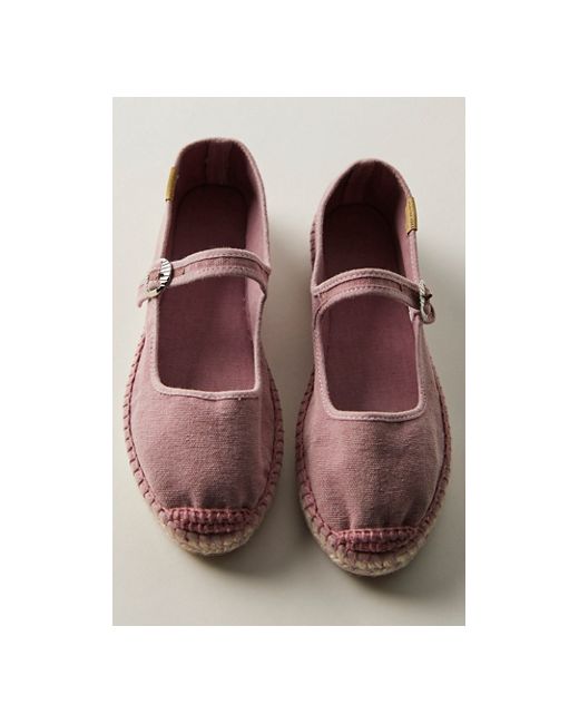 Two worlds combine with these handmade Mary Jane espadrilles, featuring an adjustable buckle strap, unique stitched accents, and classic espadrille soles for an authentic FP collection style. **Features:** Slip-on style, dyed, hand-washed canvas, round toe, adjustable circle frame buckle strap, logo tab, hand-stitched espadrille soles **Why We ❤ It:** Add a pop of color and texture to a simple tee and jeans for an effortless look. Oasis Mary Jane Espadrilles by FP Collection at Free People in Washed Orchid Ice, Size: US 7