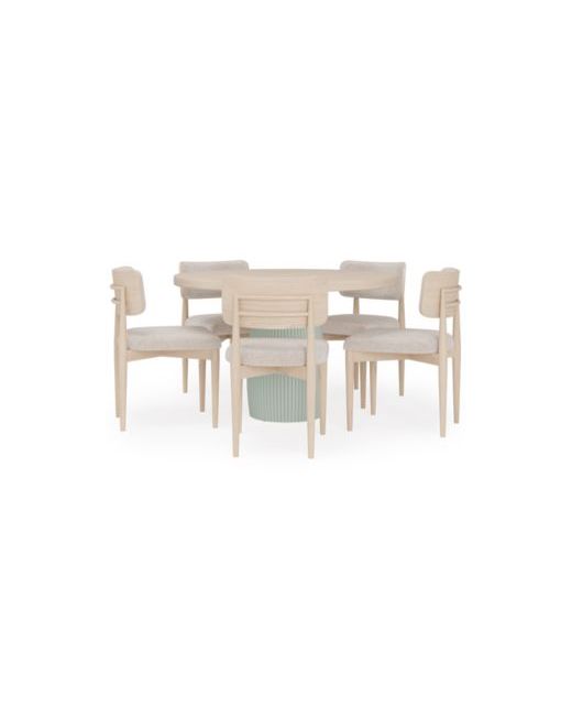 Create a trend-forward dining statement with the Lunare 6-Pc. Dining Set, exclusive to Macy's, where elegance and modern sophistication seamlessly blend. Featuring a round table crafted from natural ash wood veneer in your choice of a light white sand or refined jade finish, this set is complemented by five curved chairs.