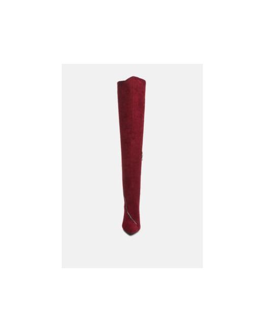 Made from cut pile velvet, this pair of long boots keeps you warm and stylish. It has silver metallic zipper which runs around the knee high boot. The pointed toe knee high stiletto boot is a sharp addition to sombre winter wardrobe!