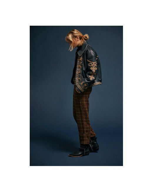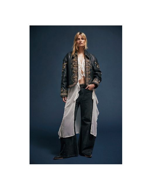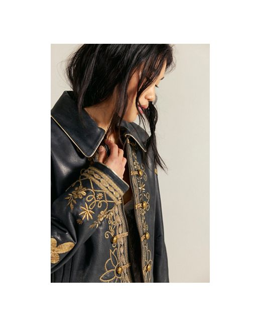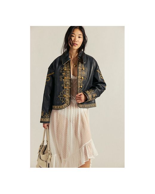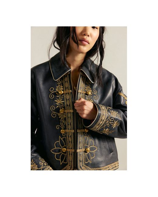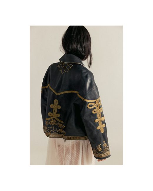 A too-cool leather jacket gets a timeless twist with this band-inspired style from We The Free, featuring intricate embroidery throughout and traditional button placements for a total stand-out style. **Fit:** Relaxed, oversized **Features:** Luxe leather fabrication, collared neckline, zipper closure, decorative button details with rope accents, intricate embroidery throughout, rounded hem at front, drop-shoulder sleeves, side pockets **Why We We The Free Lana Leather Jacket at Free People in Black, Size: Small