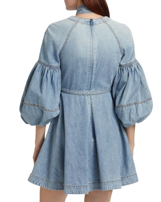 Crafted of denim, this minidress from Zimmermann is styled with a tieneck and voluminous puff sleeves. A belted waist completes the silhouette. Tieneck Long puff sleeves Belted 100% cotton Lining: 86% polyester/14% cotton Dry clean Imported SIZE & FIT About 34" from shoulder to hem Model measurements: 5'10" tall Model is wearing a US size 4 ABOUT THE BRAND Australian founders and sister-duo Nicky and Simone Zimmermann design with a signature feminine aesthetic, each piece rife with tiers of fabric, rich embroidery and splashy prints. From ruffled bikinis and beachwear to luxe, intricately patterned maxi (and mini) dresses, everything is overtly romantic in the most elevated, effortless way. Contemporary Sportswear - Zimmermann > Zimmermann > Saks Fifth Avenue > Barneys. Zimmermann. Color: Sea Foam. Size: 2.