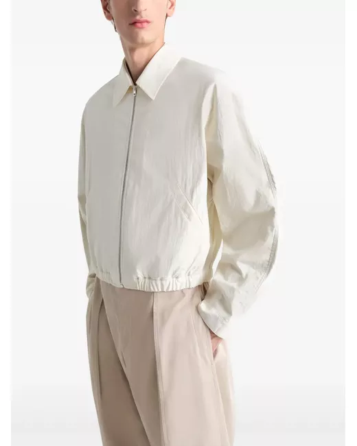 white storm flap buttoned cuffs two side welt pockets elasticated hem