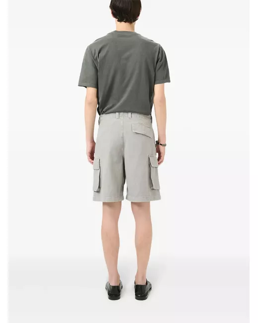 grey concealed fly and button fastening two side inset pockets two side cargo pockets rear flap pocket